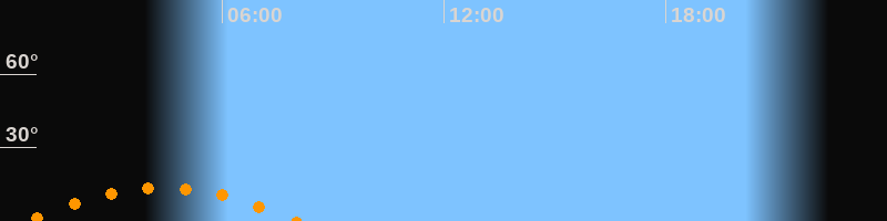 | Untergang | 08:02 Uhr im Südwesten (αAz = 227,6°) |