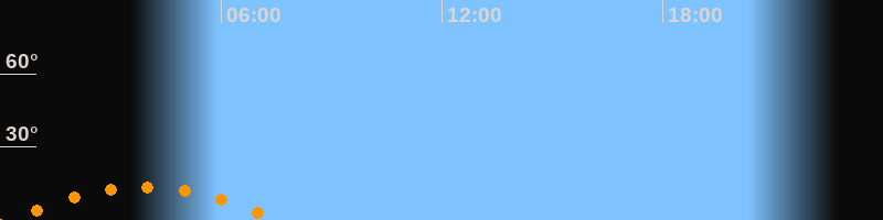 | Aufgang | 00:11 Uhr im Südosten (αAz = 132,4°) |