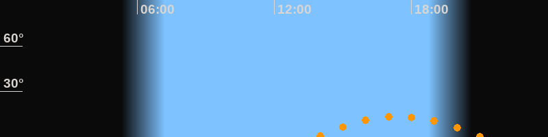 | Höchster Stand (Kulmination) | 17:28 Uhr (h = 13,5°) |