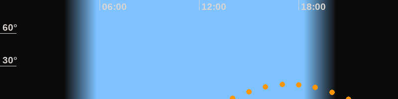 | Untergang | 21:06 Uhr im Südwesten (αAz = 227,6°) |