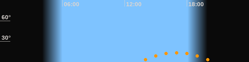 | Höchster Stand (Kulmination) | 17:00 Uhr (h = 13,5°) |