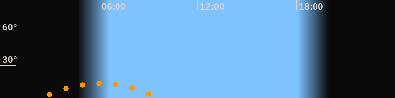 | Höchster Stand (Kulmination) | 06:03 Uhr (h = 13,5°) |