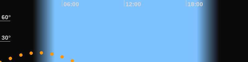 | Untergang | 07:21 Uhr im Südwesten (αAz = 227,6°) |