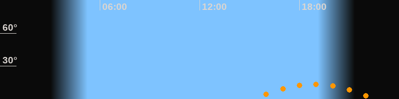 | Untergang | 22:34 Uhr im Südwesten (αAz = 227,6°) |