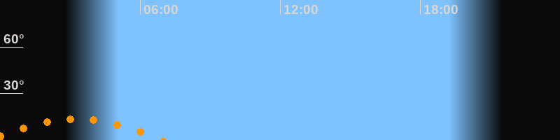 | Aufgang | 23:31 Uhr im Südosten (αAz = 132,4°) |