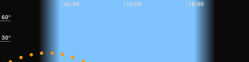 | Untergang | 08:10 Uhr im Südwesten (αAz = 227,6°) |
