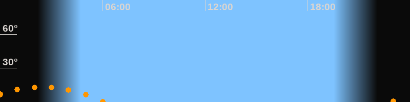 | Untergang | 06:09 Uhr im Südwesten (αAz = 227,6°) |