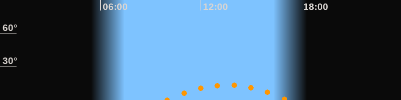 | Aufgang | 09:54 Uhr im Südosten (αAz = 132,4°) |