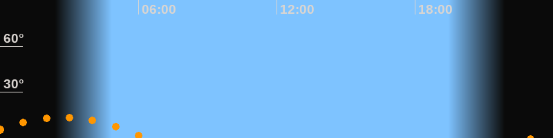 | Untergang | 06:22 Uhr im Südwesten (αAz = 227,6°) |