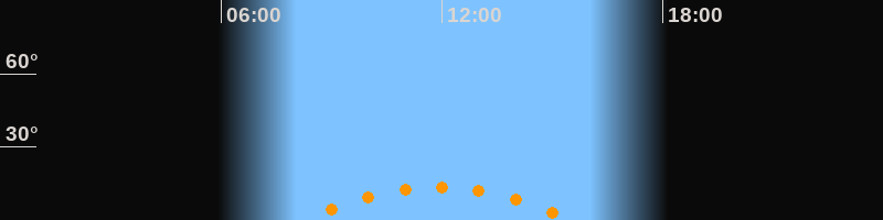 | Höchster Stand (Kulmination) | 11:54 Uhr (h = 13,5°) |