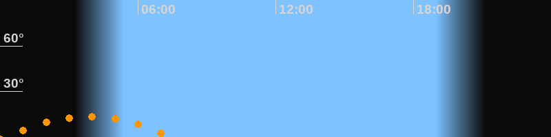 | Untergang | 07:30 Uhr im Südwesten (αAz = 227,6°) |