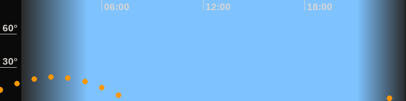 Aufgang22:34 Uhr im Südosten (αAz = 117,7°)