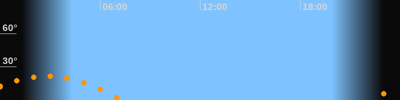 Aufgang22:12 Uhr im Südosten (αAz = 117,7°)