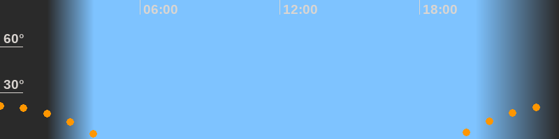 Aufgang19:23 Uhr im Südosten (αAz = 117,7°)