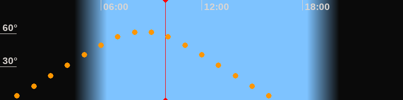 | Höchster Stand (Kulmination) | 08:30 Uhr (h = 62°) |