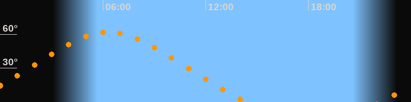 | Höchster Stand (Kulmination) | 06:19 Uhr (h = 62°) |