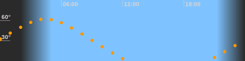 | Untergang | 12:32 Uhr im Nordwesten (αAz = 308,5°) |