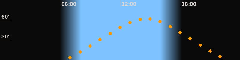 | Höchster Stand (Kulmination) | 14:35 Uhr (h = 62°) |