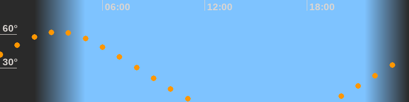 | Untergang | 11:30 Uhr im Nordwesten (αAz = 308,5°) |