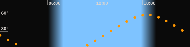 | Höchster Stand (Kulmination) | 18:34 Uhr (h = 62°) |