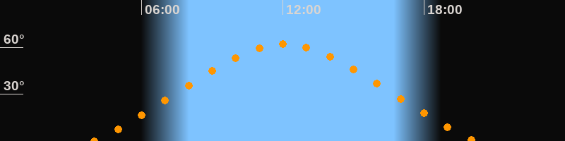 | Höchster Stand (Kulmination) | 12:03 Uhr (h = 62°) |