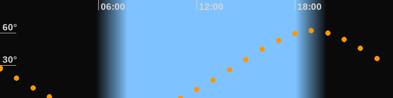 | Höchster Stand (Kulmination) | 19:03 Uhr (h = 62°) |