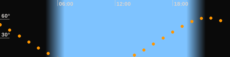| Aufgang | 13:32 Uhr im Nordosten (αAz = 51,5°) |