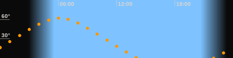 | Höchster Stand (Kulmination) | 06:06 Uhr (h = 62°) |