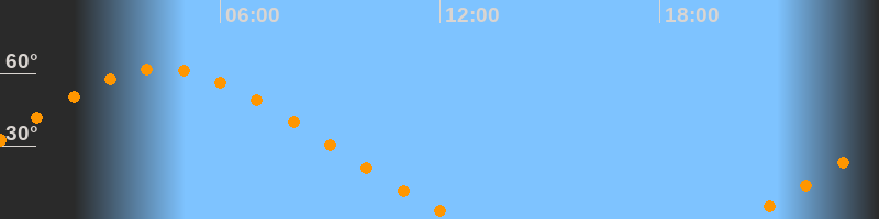 | Untergang | 12:30 Uhr im Nordwesten (αAz = 308,5°) |