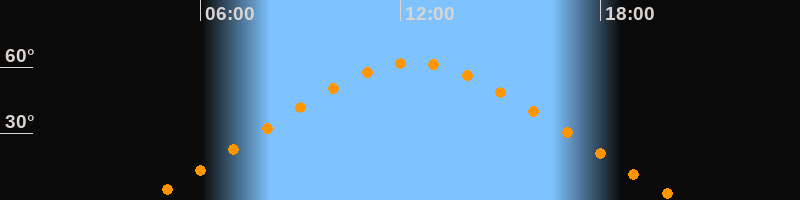 Höchster Stand (Kulmination)12:24 Uhr (h = 62°)