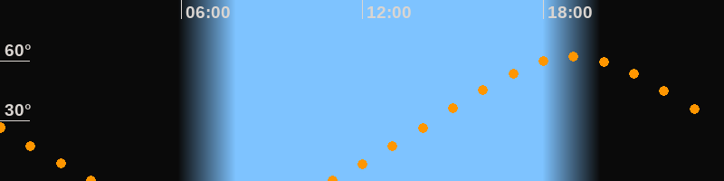 | Höchster Stand (Kulmination) | 18:59 Uhr (h = 62°) |