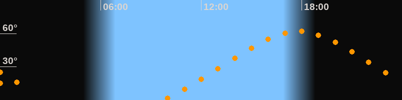 | Höchster Stand (Kulmination) | 17:48 Uhr (h = 62°) |