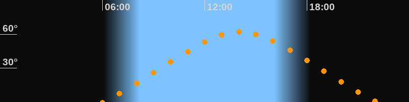 | Höchster Stand (Kulmination) | 14:04 Uhr (h = 62°) |
