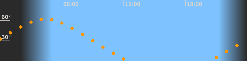 | Untergang | 12:29 Uhr im Nordwesten (αAz = 308,5°) |