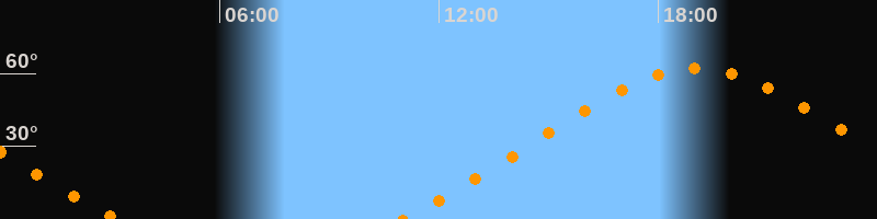 Höchster Stand (Kulmination)19:05 Uhr (h = 62°)