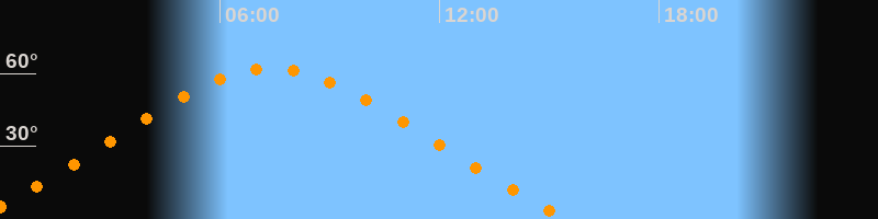 | Höchster Stand (Kulmination) | 07:25 Uhr (h = 62°) |