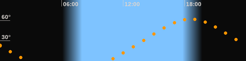 | Höchster Stand (Kulmination) | 18:34 Uhr (h = 62°) |