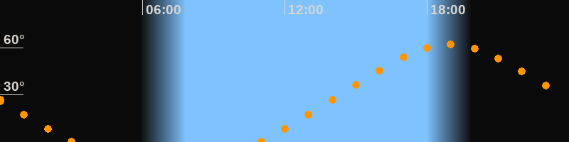 | Höchster Stand (Kulmination) | 18:58 Uhr (h = 62°) |