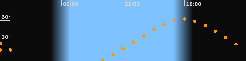 | Höchster Stand (Kulmination) | 17:51 Uhr (h = 62°) |