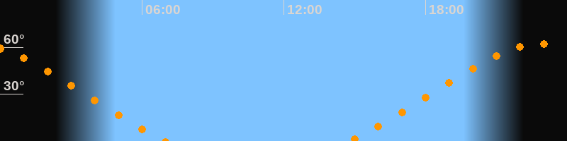| Aufgang | 14:45 Uhr im Nordosten (αAz = 51,5°) |