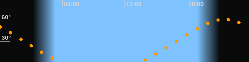 | Aufgang | 13:31 Uhr im Nordosten (αAz = 51,5°) |