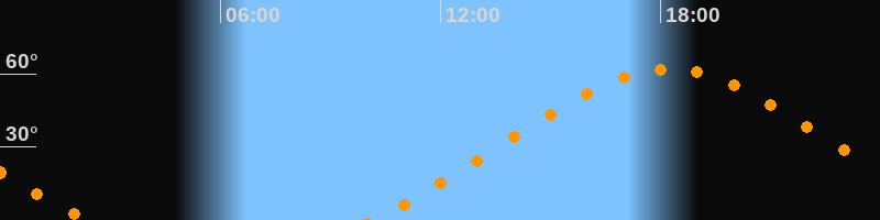 | Höchster Stand (Kulmination) | 18:13 Uhr (h = 62°) |