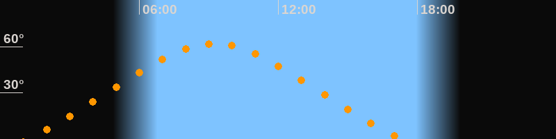 | Höchster Stand (Kulmination) | 09:14 Uhr (h = 62°) |