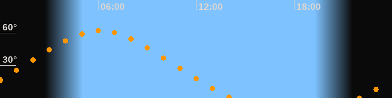 | Höchster Stand (Kulmination) | 06:06 Uhr (h = 62°) |