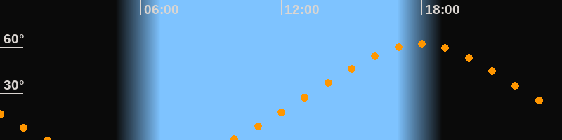 | Höchster Stand (Kulmination) | 17:54 Uhr (h = 62°) |