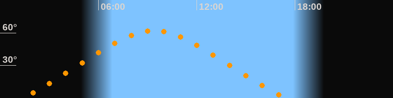 | Höchster Stand (Kulmination) | 09:23 Uhr (h = 62°) |