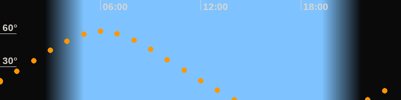 | Höchster Stand (Kulmination) | 06:03 Uhr (h = 62°) |