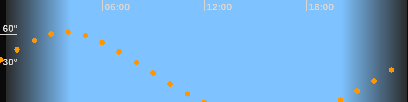 | Aufgang | 19:43 Uhr im Nordosten (αAz = 51,5°) |