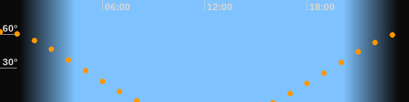 | Höchster Stand (Kulmination) | 00:05 Uhr (h = 62°) |