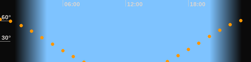 | Untergang | 08:03 Uhr im Nordwesten (αAz = 308,5°) |
